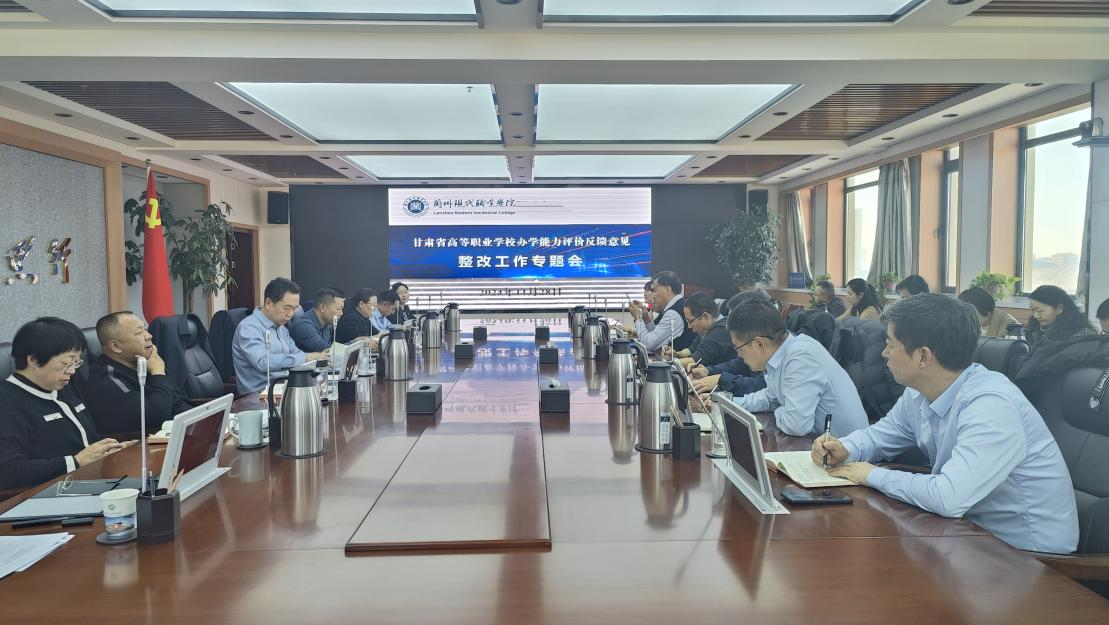 根据教育部教育督导局《关于委托开展“高等职业学校办学能力评价实施方案”测试工作的函》《甘肃省教育厅关于开展2024年高校分类评价督导工作的通知》《甘肃省高等职业学校办学能力评价测试工作方案》,为进一步推动学院内涵建设和高质量发展,全面落实省教育厅专家组反馈意见,近日,学院组织召开了办学能力评价反馈意见整改工作专题会议。学院党委书记曾乐强,院长李成宏,党委副书记、副院长王茂昌,副院长苏瑞琴,各二级学院书记、院长以及各处室负责人参加了会议。会议由副院长杨巧玉主持。